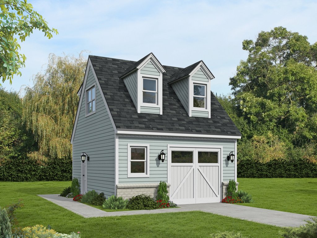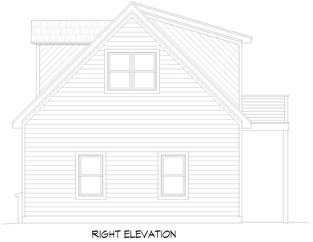 - Exterior Elevations: Views of the home from all four sides showing exterior materials, roof slope, ridge heights, siding and trim notes.