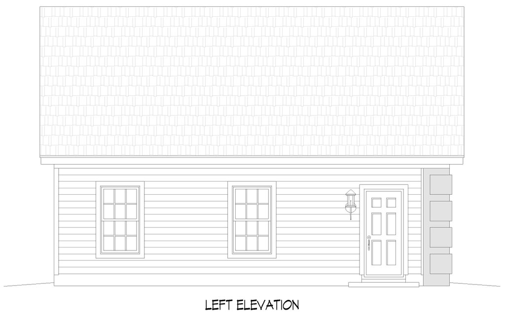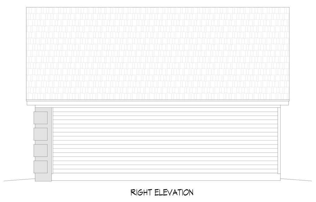 - Exterior Elevations: Views of the home from all four sides showing exterior materials, roof slope, ridge heights, siding and trim notes.