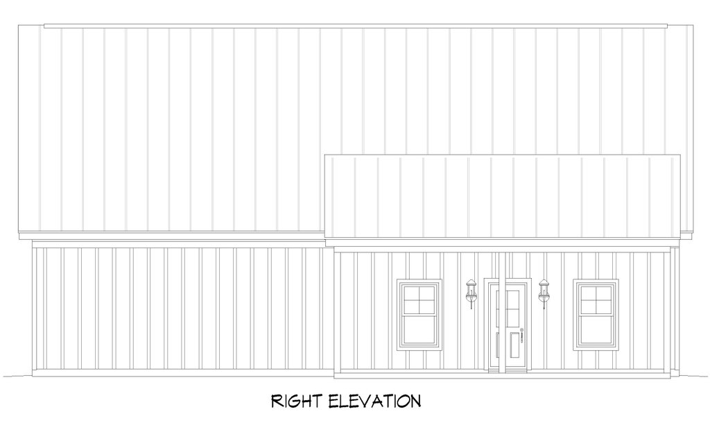 - Exterior Elevations: Views of the home from all four sides showing exterior materials, roof slope, ridge heights, siding and trim notes.