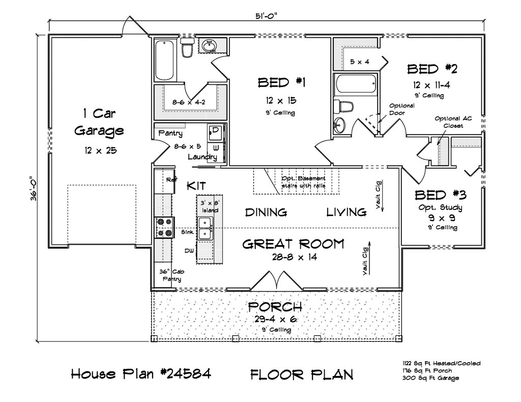 - Foundation Plan(s): This page shows all necessary notations and dimensions including footings, support columns, walls, and excavated/unexcavated areas.