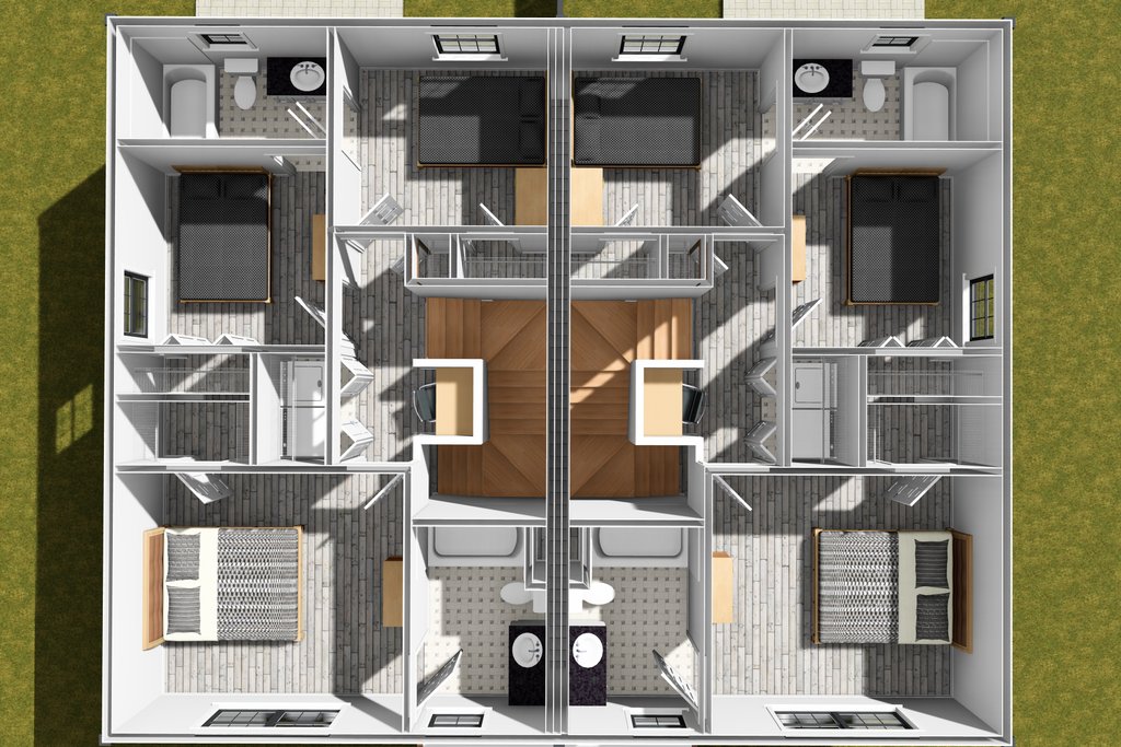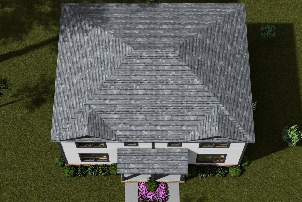 - Overhead Roof Plan(s): A view of the home from above showing roof pitch, peaks, valleys, and other details.