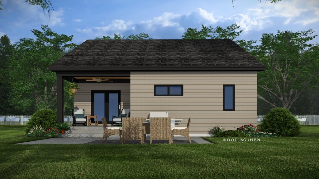 - Exterior Elevations: A blueprint picture of all four sides showing exterior materials and measurements. Drawn to 1/4" and 1/8" scale.