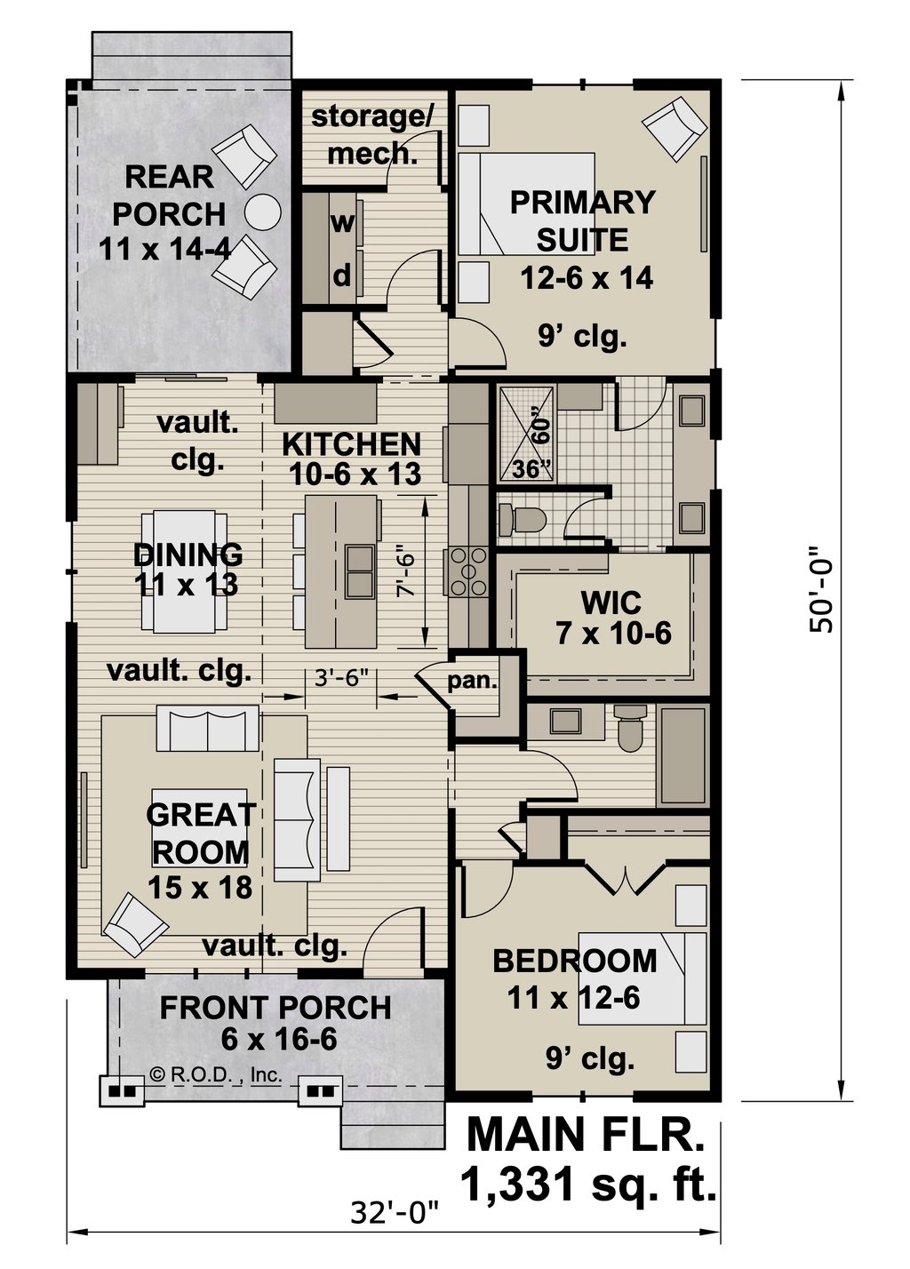- Foundation Plan(s): This page shows all necessary notations and dimensions including footings, support columns, walls, and excavated/unexcavated areas.