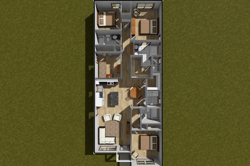 - Overhead Roof Plan(s): A view of the home from above showing roof pitch, peaks, valleys, and other details.