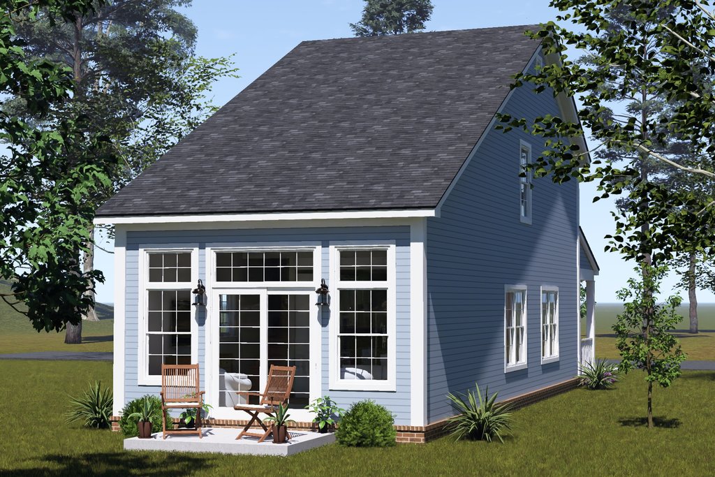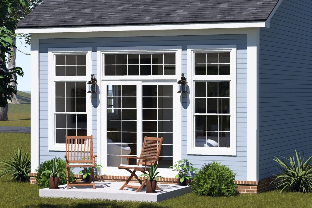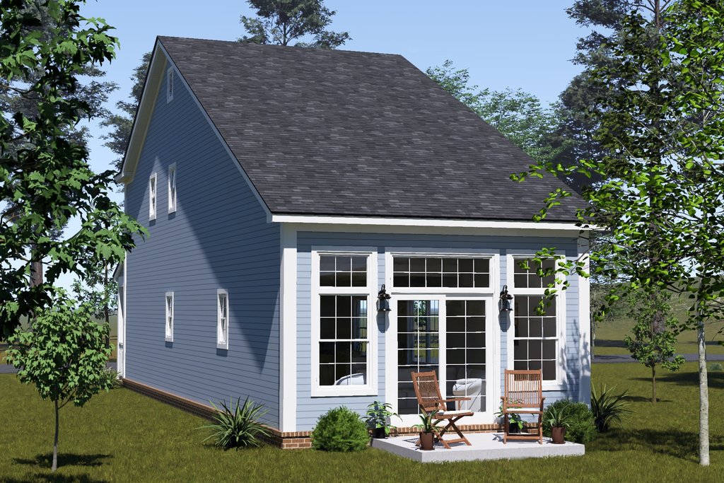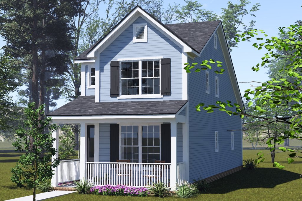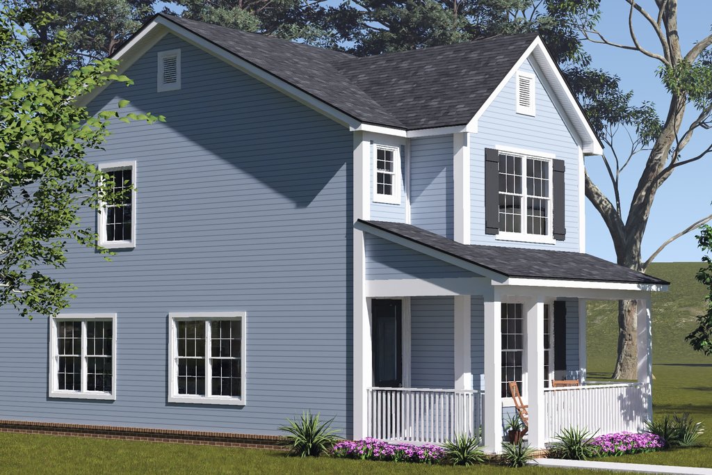 - Exterior Elevations: Views of the home from all four sides showing exterior materials, roof slope, ridge heights, siding and trim notes.