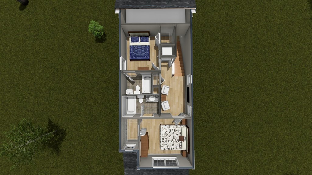 - Overhead Roof Plan(s): A view of the home from above showing roof pitch, peaks, valleys, and other details.
