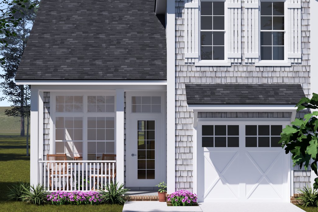 - Exterior Elevations: Views of the home from all four sides showing exterior materials, roof slope, ridge heights, siding and trim notes.