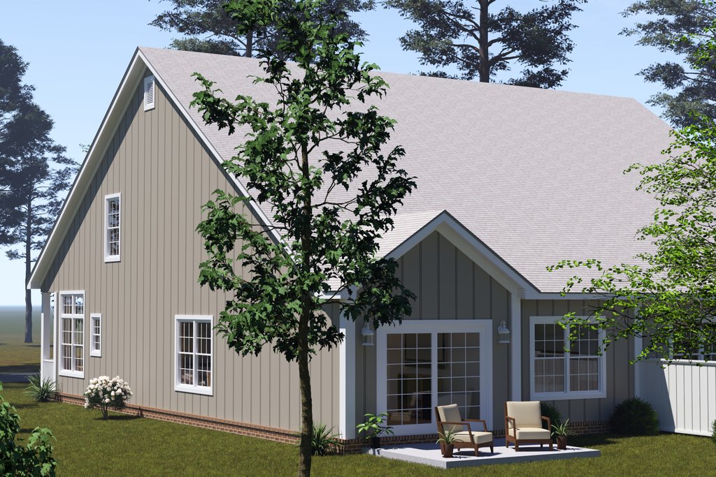 - Exterior Elevations: Views of the home from all four sides showing exterior materials, roof slope, ridge heights, siding and trim notes.