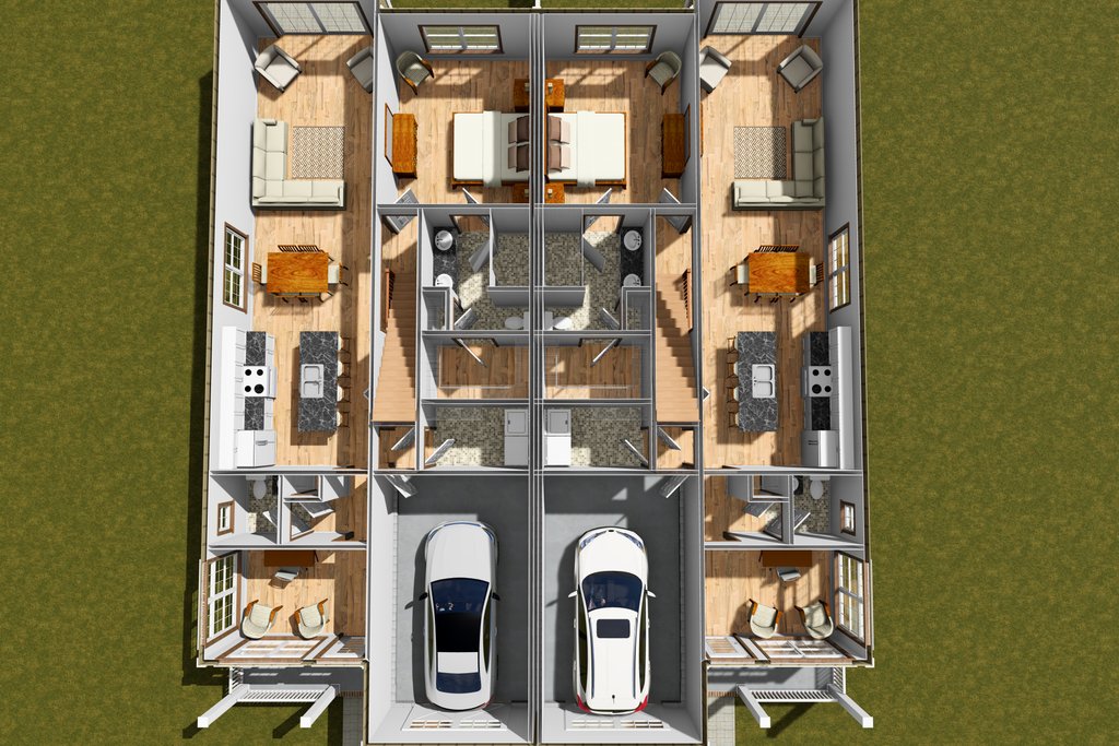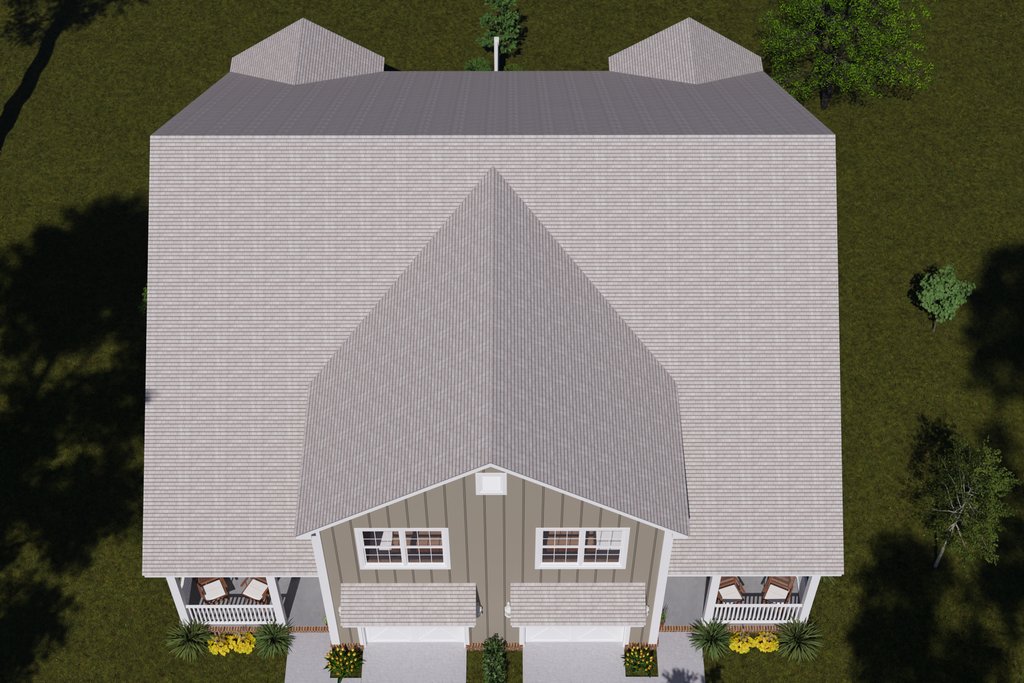 - Overhead Roof Plan(s): A view of the home from above showing roof pitch, peaks, valleys, and other details.