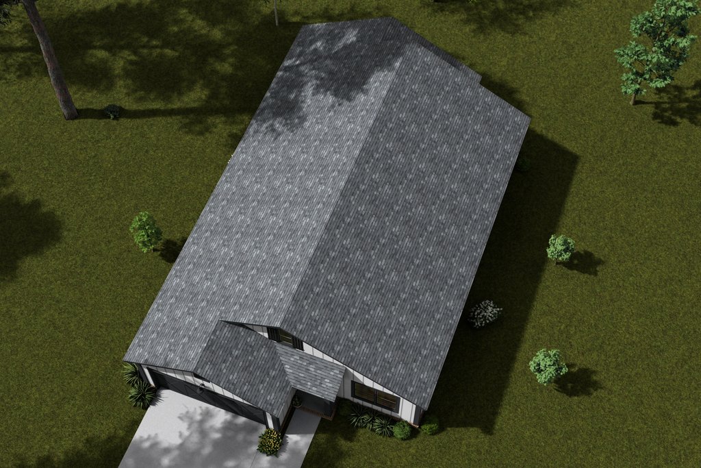 - Overhead Roof Plan(s): A view of the home from above showing roof pitch, peaks, valleys, and other details.