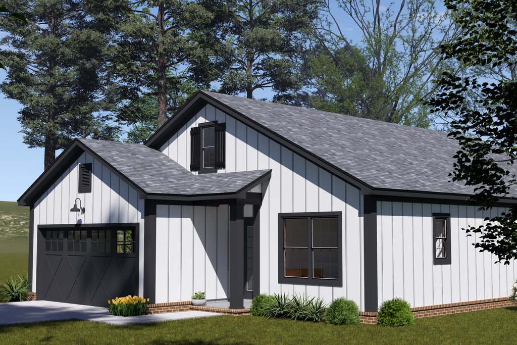 - Exterior Elevations: Views of the home from all four sides showing exterior materials, roof slope, ridge heights, siding and trim notes.