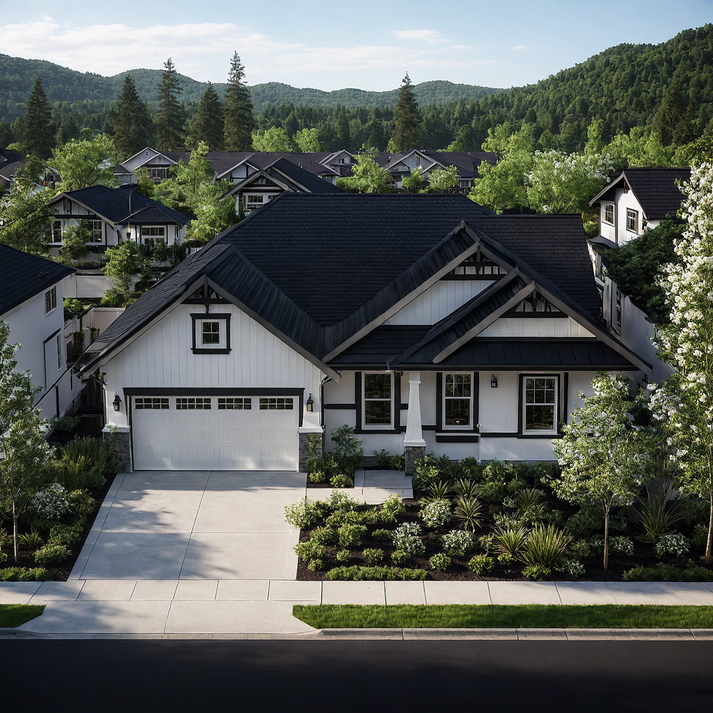 - Overhead Roof Plan(s): A view of the home from above showing roof pitch, peaks, valleys, and other details.