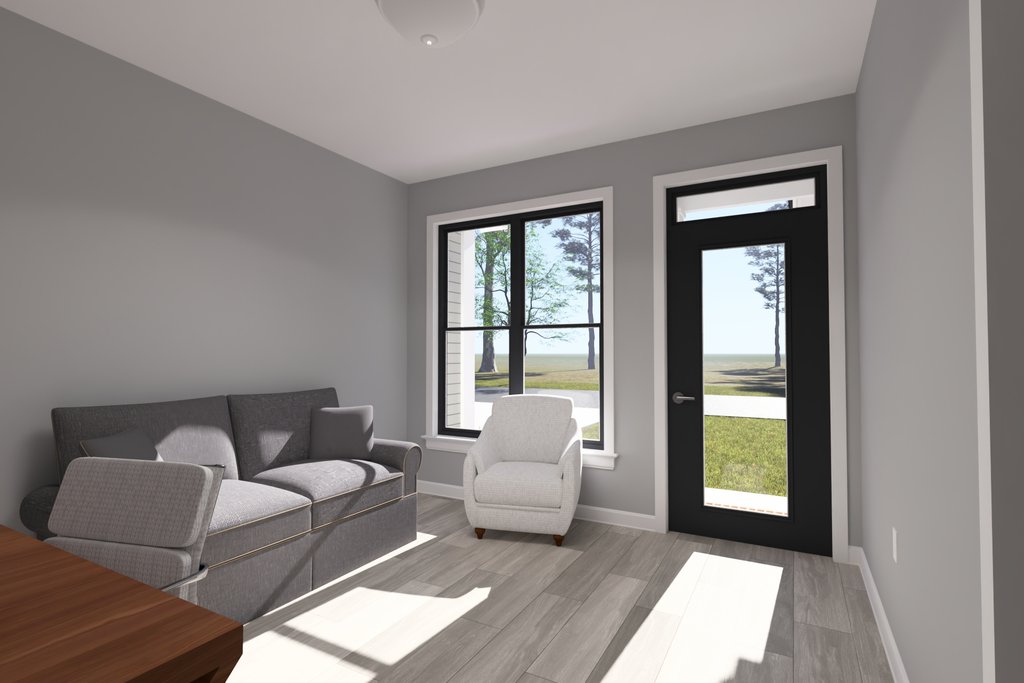 - Exterior Elevations: Views of the home from all four sides showing exterior materials, roof slope, ridge heights, siding and trim notes.