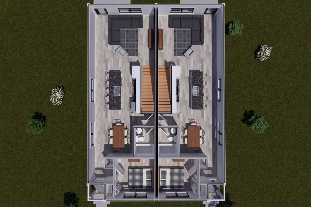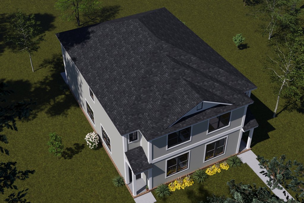 - Overhead Roof Plan(s): A view of the home from above showing roof pitch, peaks, valleys, and other details.