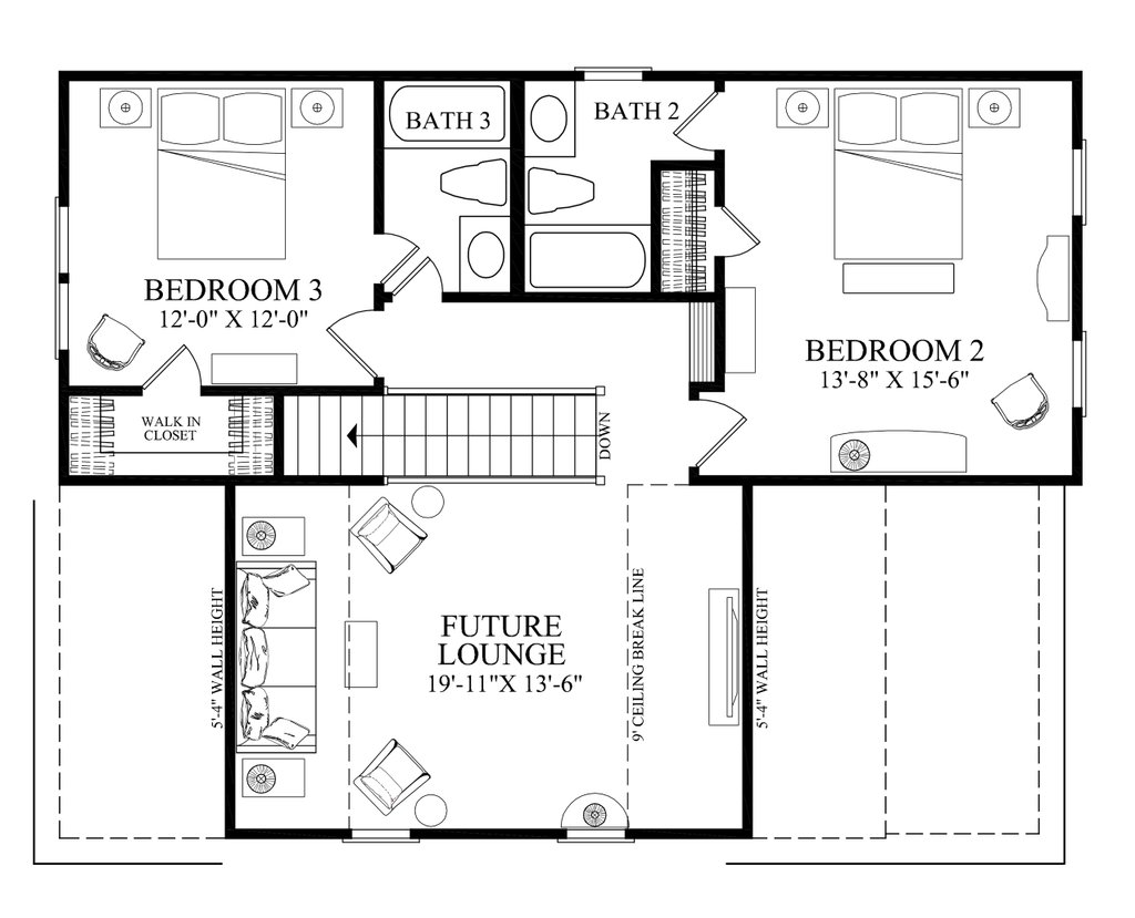 - Foundation Plan(s): This page shows all necessary notations and dimensions including footings, support columns, walls, and excavated/unexcavated areas.