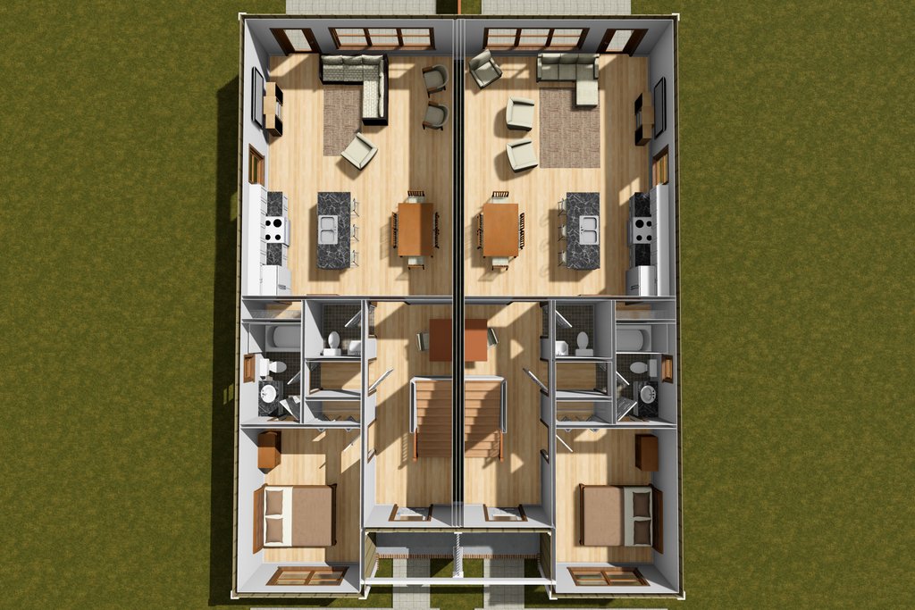 - Overhead Roof Plan(s): A view of the home from above showing roof pitch, peaks, valleys, and other details.