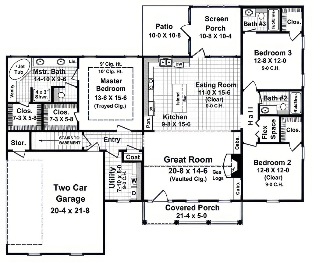 - Foundation Plan(s): Drawn to 1/4" scale, this page shows all necessary notations and dimensions including support columns, walls and excavated and unexcavated areas.