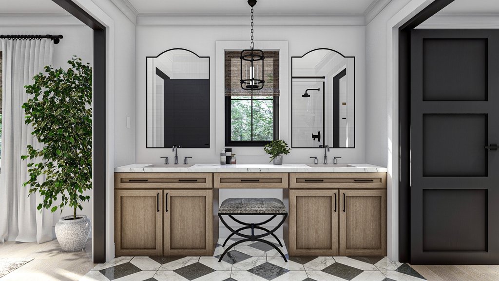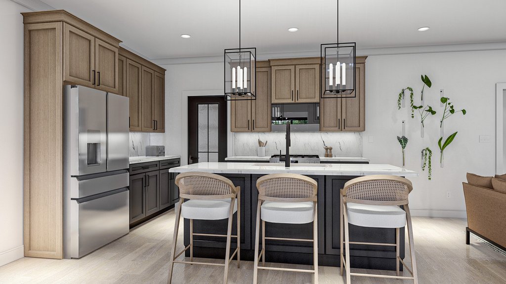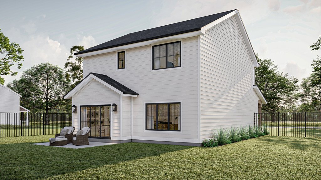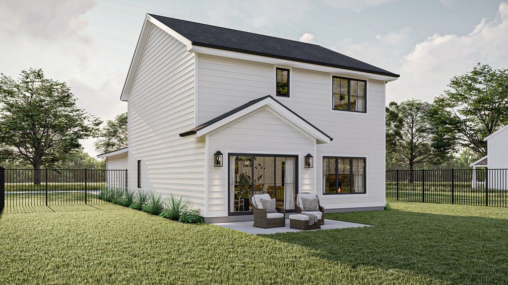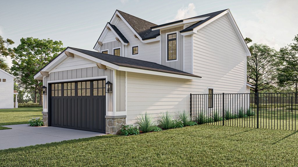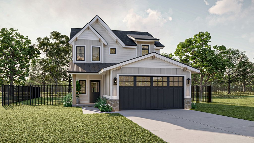 Introducing the modern craftsman house plan, a perfect blend of rustic charm and contemporary design. This thoughtfully crafted home offers a harmonious combination of functionality, style, and comfort, making it an ideal sanctuary for modern living. Upon arrival, you are greeted by a striking exterior that showcases the timeless appeal of the craftsman architectural style. The 2-car garage, seamlessly attached to the home, provides convenient access and ample space for vehicles and storage. Step inside, and you'll immediately appreciate the clever layout and attention to detail. The main floor encompasses 975 square feet of intelligently designed space. A versatile flex room awaits, ready to be transformed into a home office, playroom, or guest suite, catering to your unique needs. The open concept dining area, great room, and kitchen seamlessly flow together, creating a spacious and inviting atmosphere for entertaining or everyday family gatherings. The heart of the home, the kitchen, boasts modern amenities and high-quality finishes, inviting culinary exploration and creativity. With ample counter space, a center island, and a walk-in pantry, it caters to both the passionate chef and the busy family. Moving upstairs, you'll discover 853 square feet of well-appointed living space. Three bedrooms provide private retreats for family members or guests, ensuring everyone has their own personal haven. The master bedroom exudes luxury, featuring a tray ceiling that adds depth and elegance to the room. Connected to the master suite is a private bathroom, boasting contemporary fixtures, a spacious shower, and a dual vanity. A generously sized walk-in closet provides ample storage space for your wardrobe and accessories. Additionally, the two remaining bedrooms share a well-appointed bathroom, completing the upper level. Convenience is key, and this house plan doesn't disappoint. The inclusion of a dedicated laundry room on the upper floor eliminates the hassle of carrying laundry up and down stairs, streamlining daily chores and providing added convenience. Throughout the home, natural light floods the living spaces, creating an airy and inviting ambiance. The modern craftsman house plan pays homage to traditional aesthetics while incorporating the contemporary elements desired by today's homeowners. With its impeccable design, functional layout, and luxurious features, this house plan sets the stage for a modern, comfortable, and stylish lifestyle. Whether you're seeking a place to raise a family, entertain friends, or simply enjoy the serenity of your own private oasis, this modern craftsman house plan is the epitome of modern living at its finest.