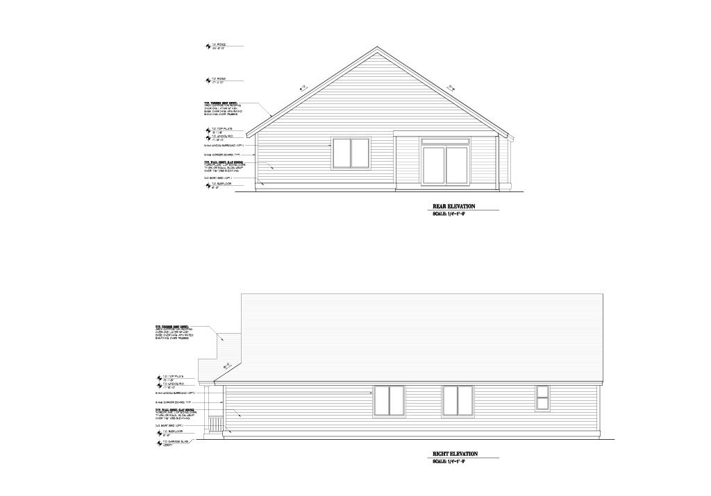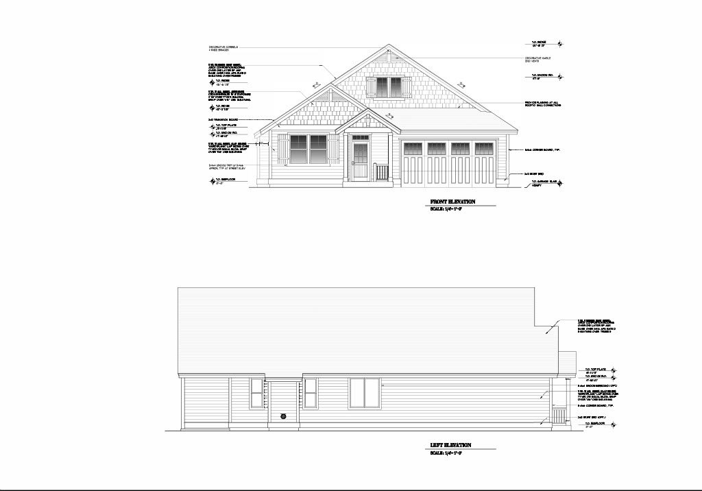 - Exterior Elevations: A blueprint picture of all four sides showing exterior materials and measurements.