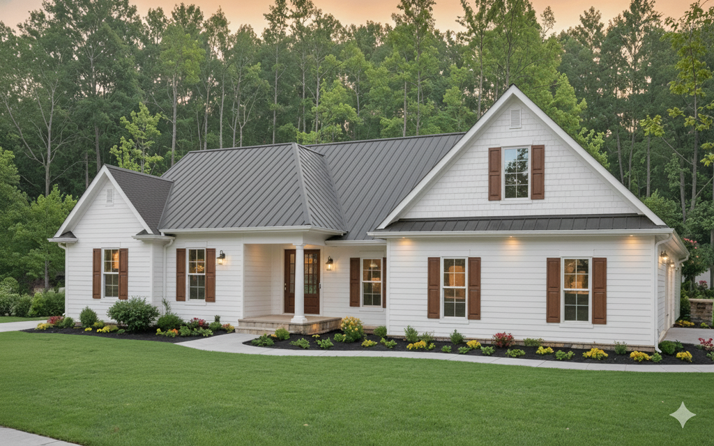 - Exterior Elevations: A blueprint picture of all four sides showing exterior materials and measurements.