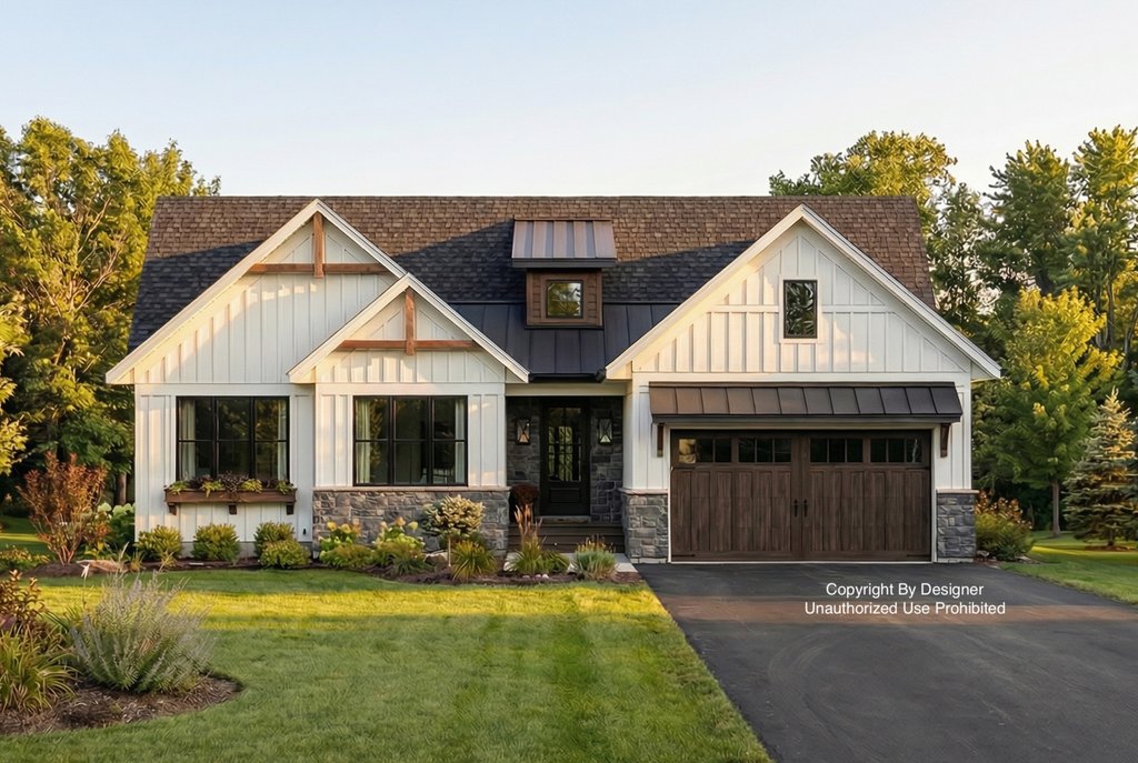 - Overhead Roof Plan(s): A view of the home from above showing roof pitch, peaks, valleys, and other details.