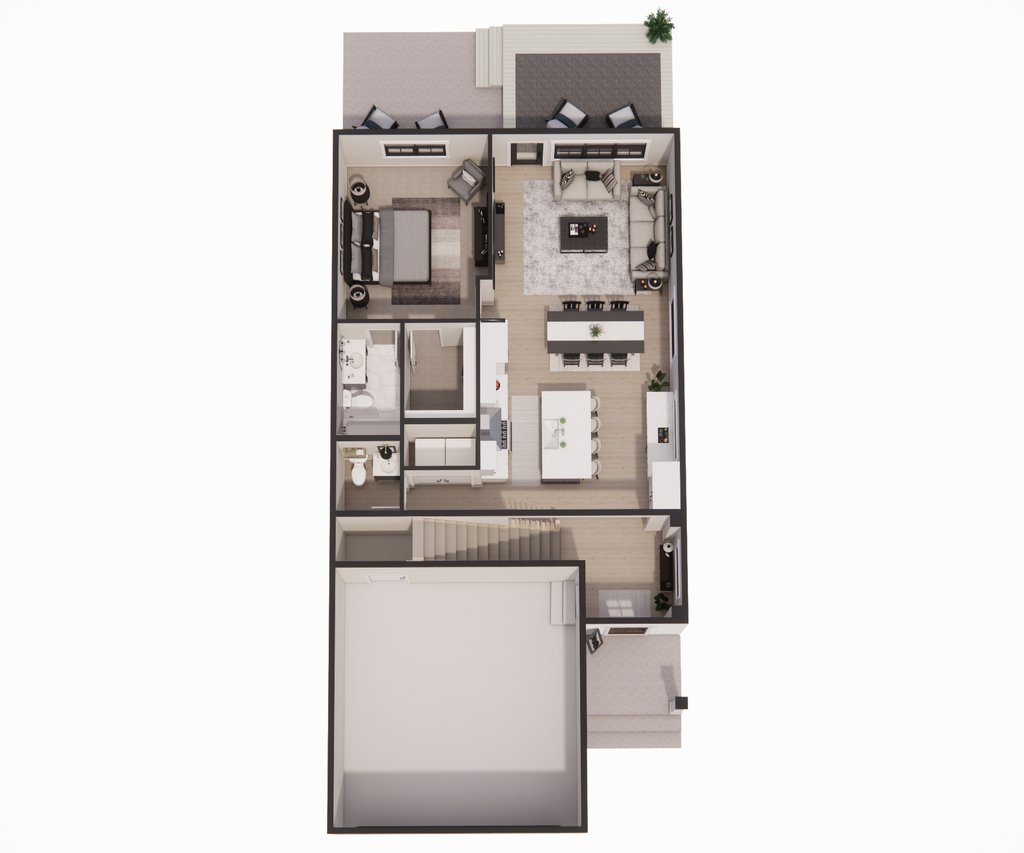 - Overhead Roof Plan(s): A view of the home from above showing roof pitch, peaks, valleys, and other details.
