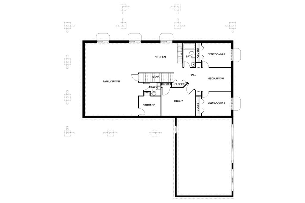 - Foundation Plan: This page shows all necessary notations and dimensions including support columns, walls, and excavated/unexcavated areas.