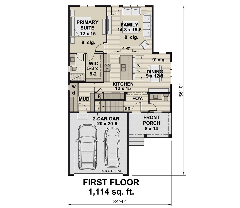 - Foundation Plan(s): This page shows all necessary notations and dimensions including footings, support columns, walls, and excavated/unexcavated areas.