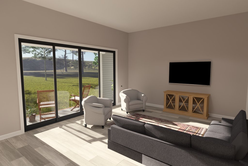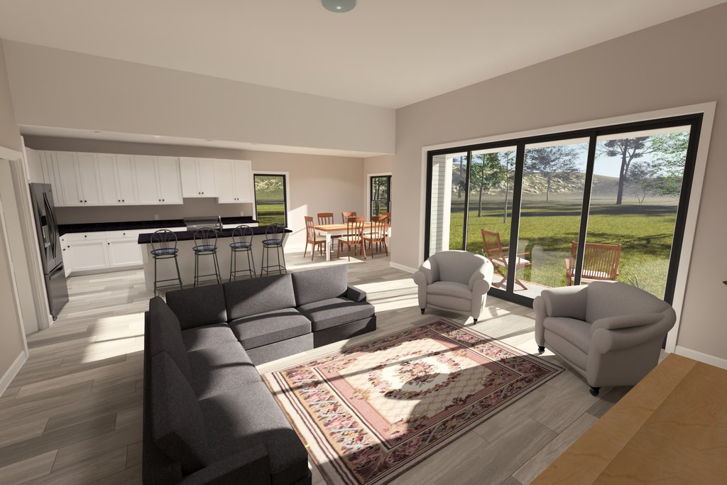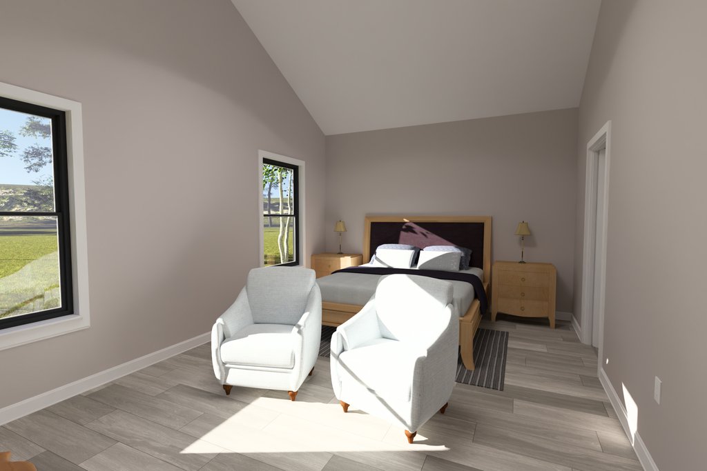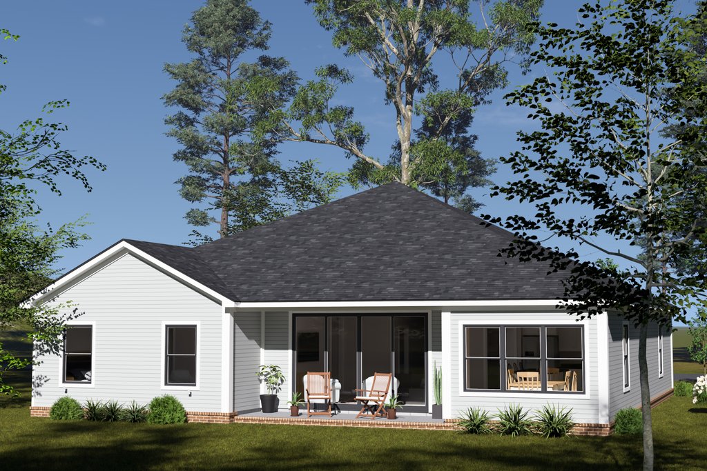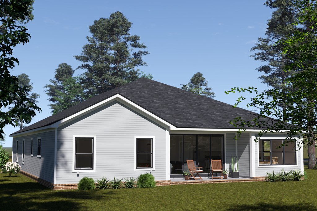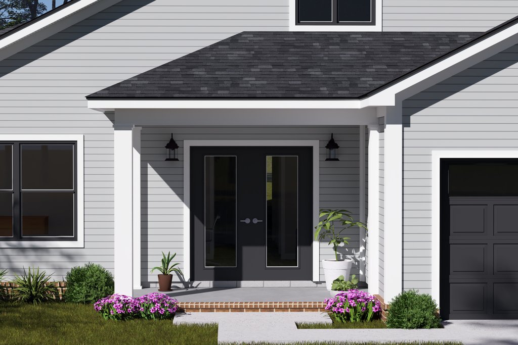 - Exterior Elevations: Views of the home from all four sides showing exterior materials, roof slope, ridge heights, siding and trim notes.