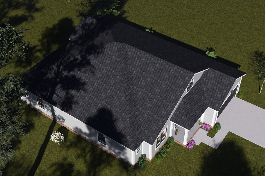 - Overhead Roof Plan(s): A view of the home from above showing roof pitch, peaks, valleys, and other details.