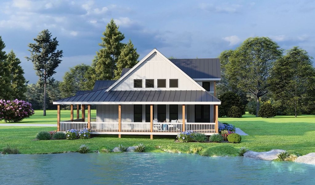 - Exterior Elevations: Views of the home from all four sides showing exterior materials, roof slope, ridge heights, siding and trim notes.
