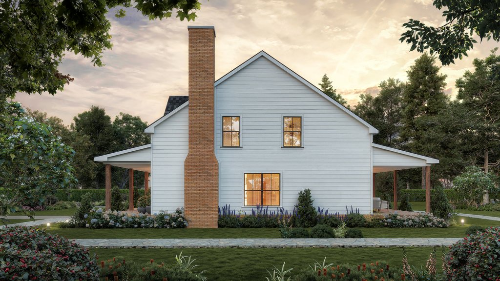 - Exterior Elevations: Views of the home from all four sides showing exterior materials, roof slope, ridge heights, siding and trim notes.