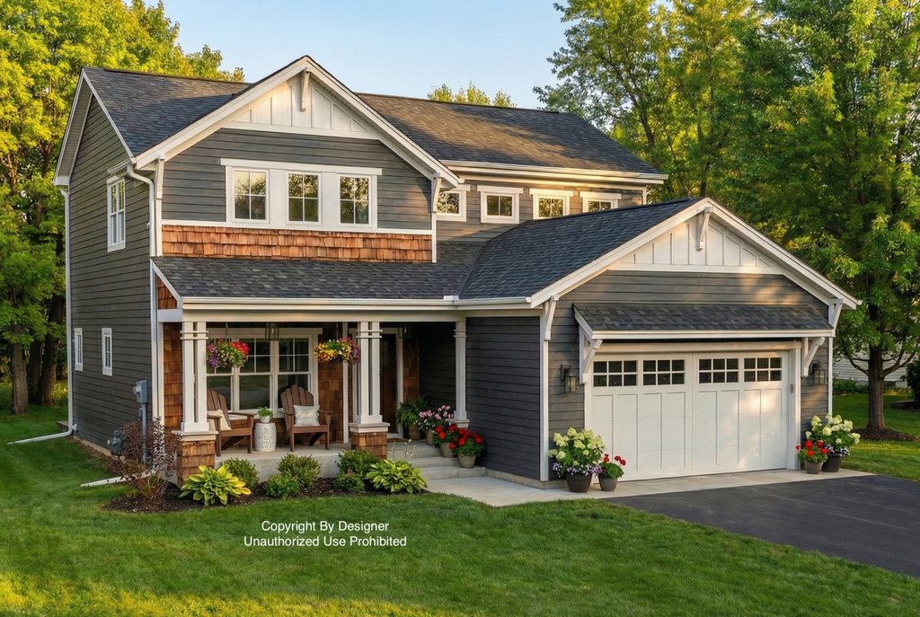 - Overhead Roof Plan(s): A view of the home from above showing roof pitch, peaks, valleys, and other details.