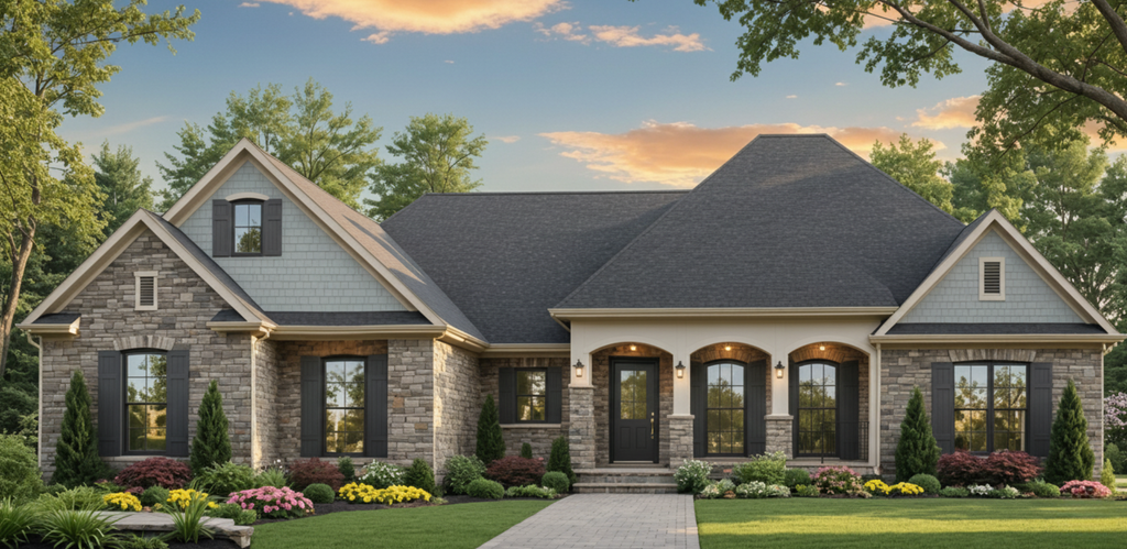 - Exterior Elevations: A blueprint picture of all four sides showing exterior materials and measurements.