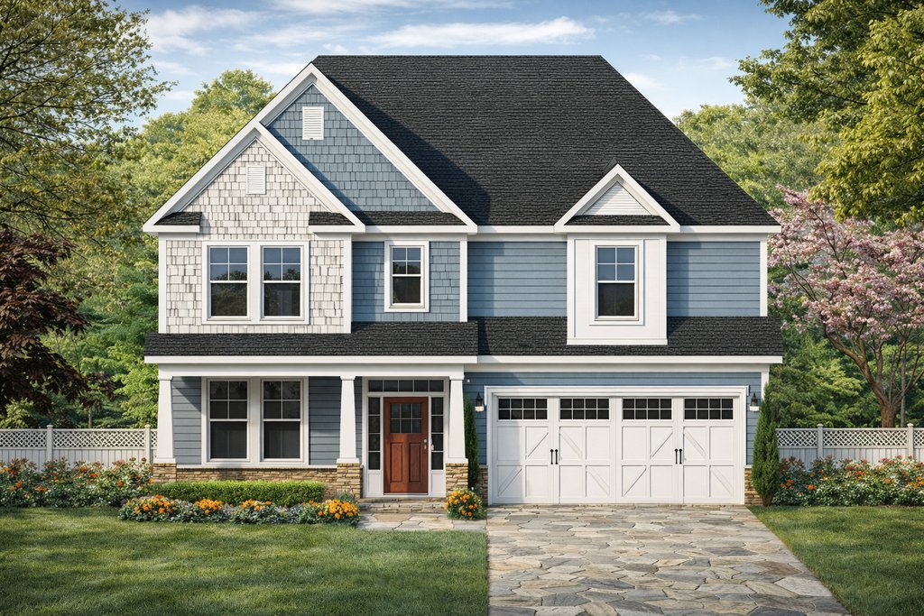 - Overhead Roof Plan(s): A view of the home from above showing roof pitch, peaks, valleys, and other details.