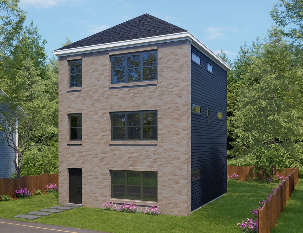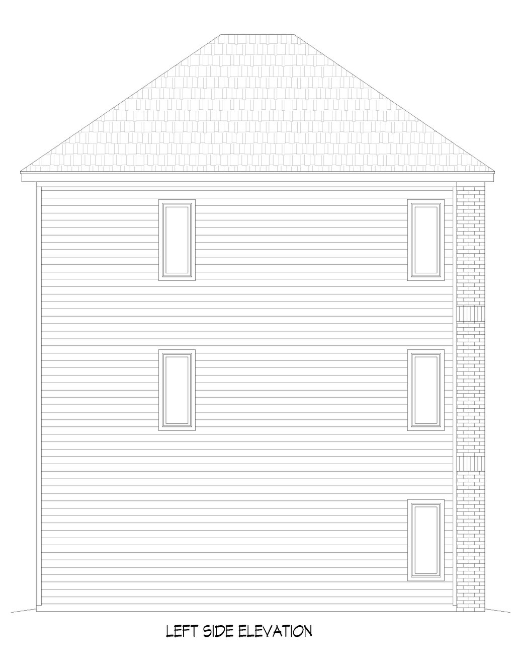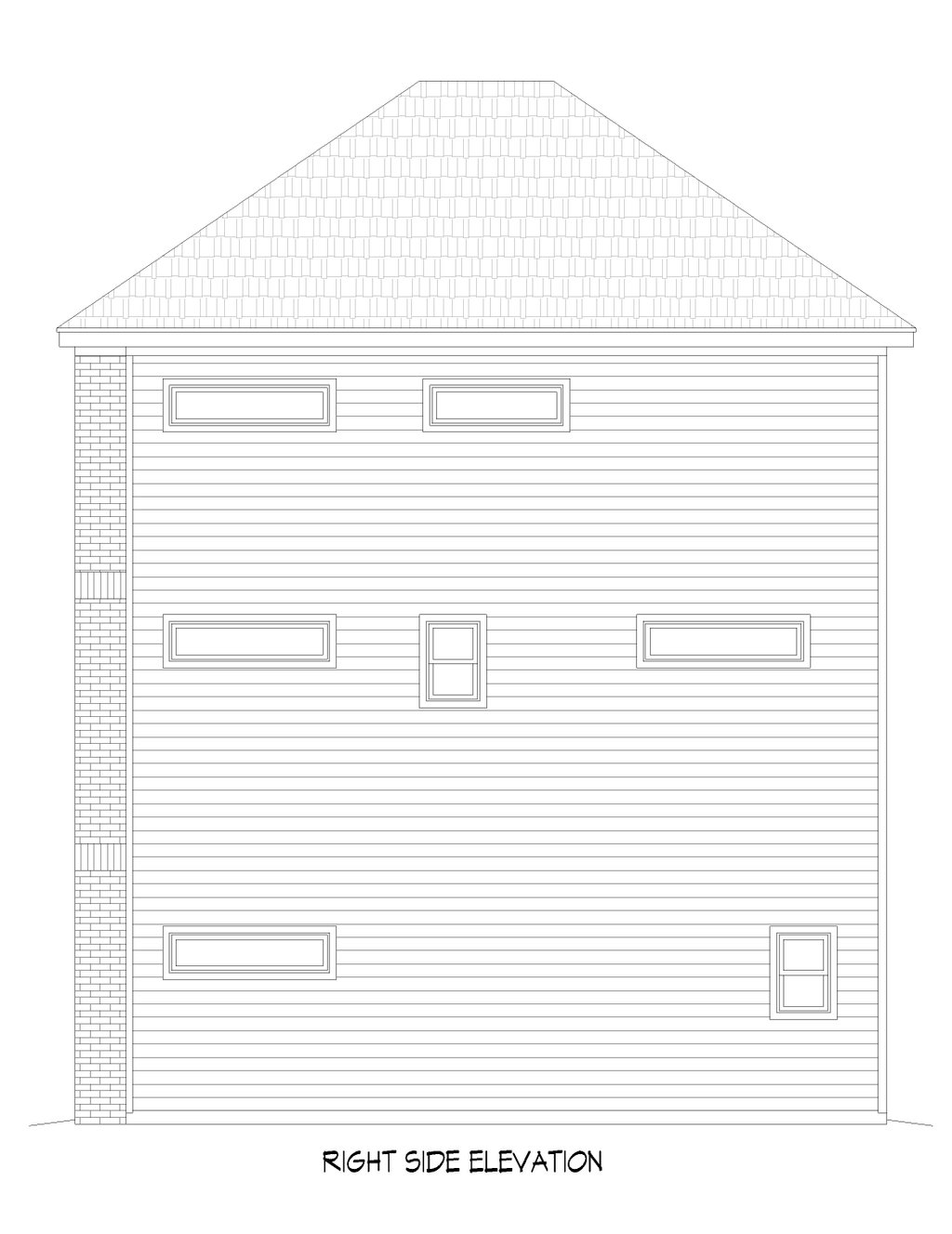 - Exterior Elevations: Views of the home from all four sides showing exterior materials, roof slope, ridge heights, siding and trim notes.