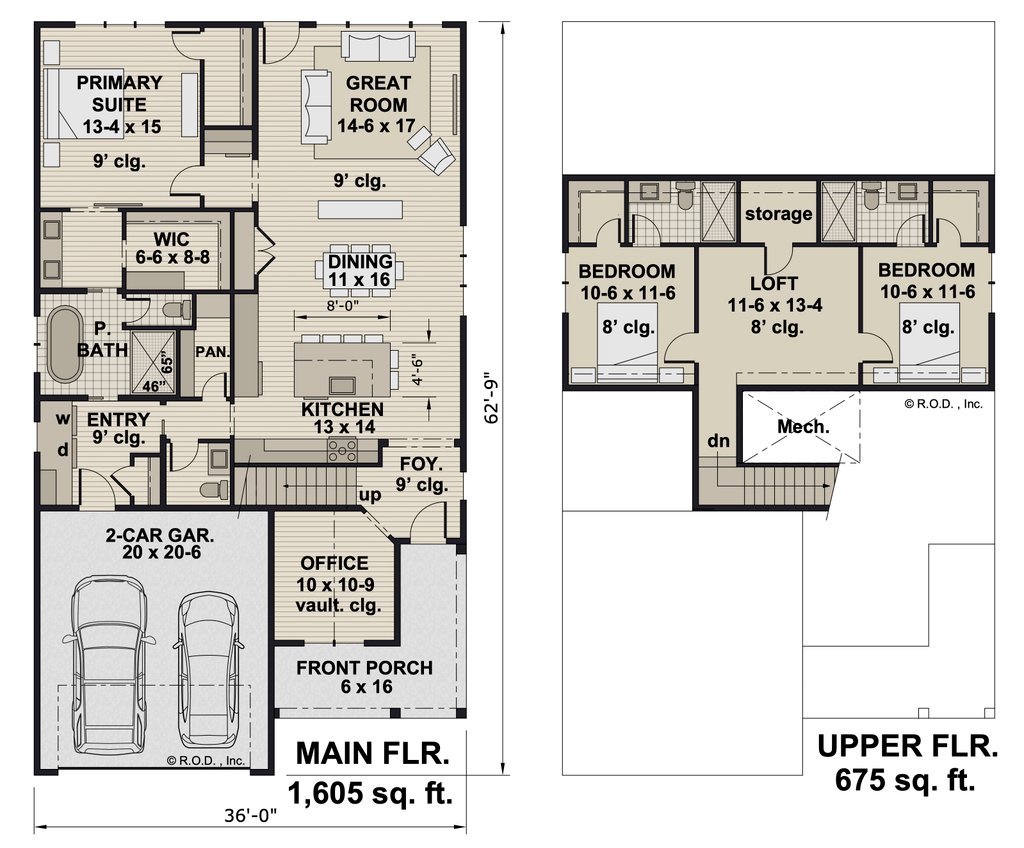 - Overhead Roof Plan(s): A view of the home from above showing roof pitch, peaks, valleys, and other details.