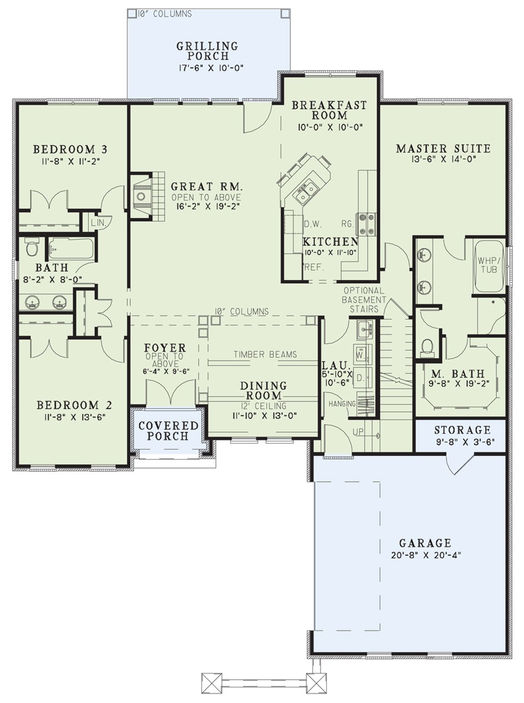 - Foundation Plan(s): Most plans are available with a slab or crawlspace foundation. Optional walkout style basement (three walls masonry with a wood framed rear wall with notes for the builder to locate the windows and doors) and optional full basement foundation available if the plan allows, at an additional cost. (Walk out is not shown on elevations unless finished walk out.)