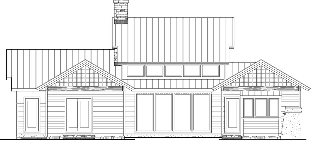 - Exterior Elevations: Views of the home from all four sides showing exterior materials, roof slope, ridge heights, siding and trim notes.
