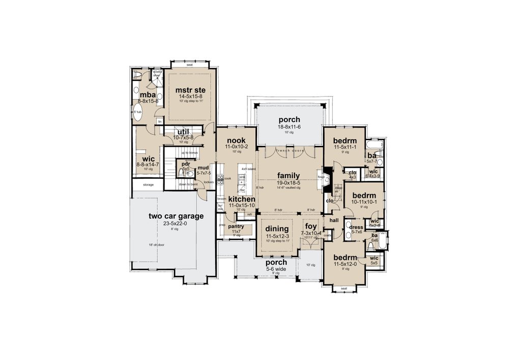 Ceiling Details : Family vaulted to 14'-6" Secondary bedrooms are 9'-0" 11' stepped ceilings in master Bedroom, Dining and Foyer