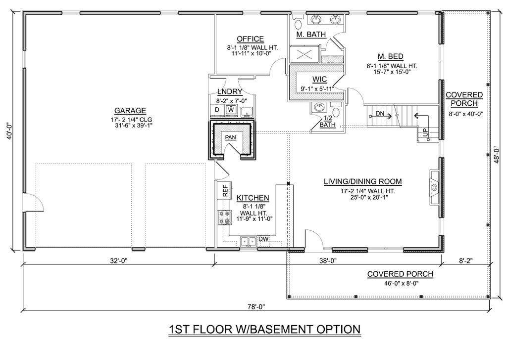 - Foundation Plan: This page shows all necessary notations and dimensions including support columns, walls, and excavated/unexcavated areas.