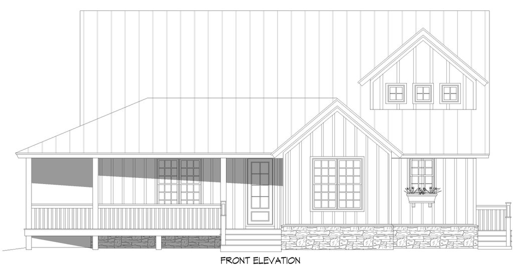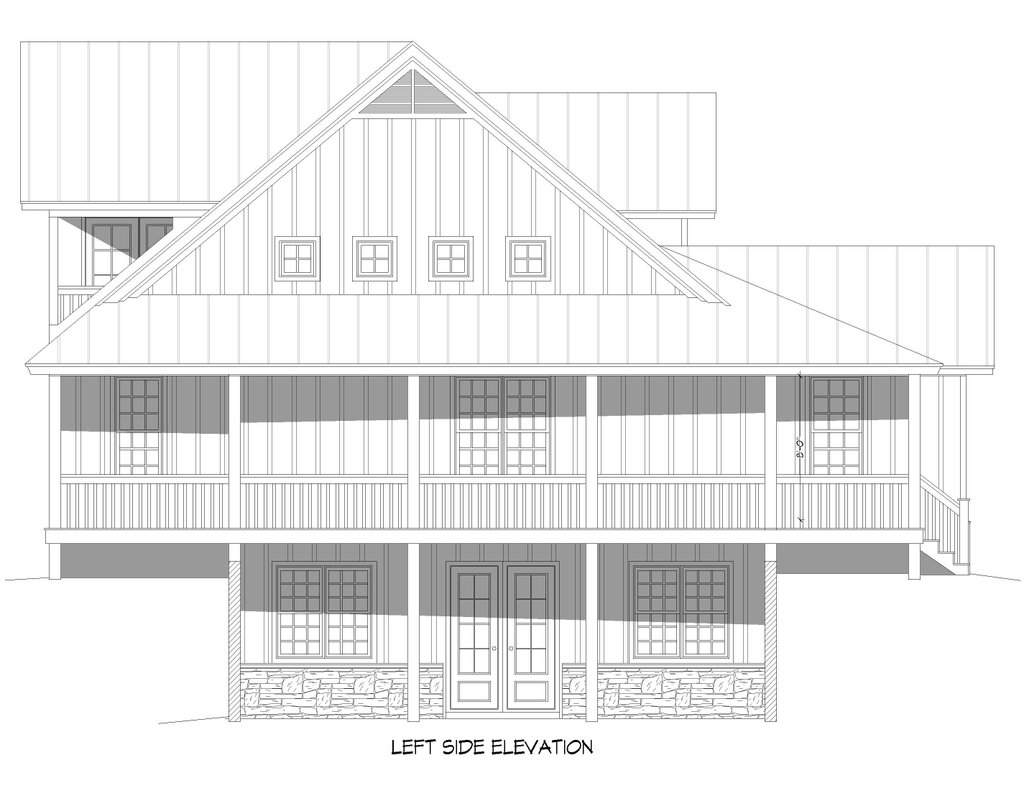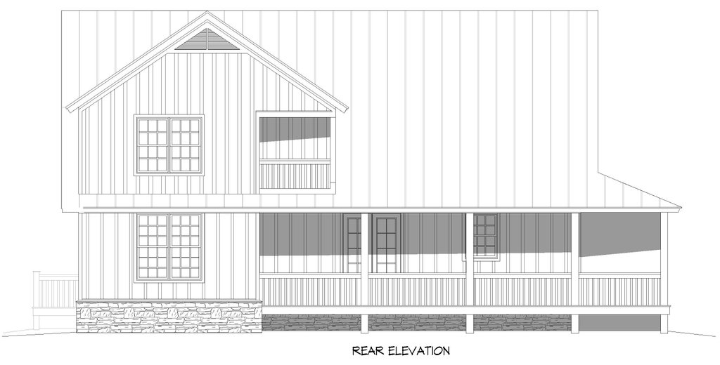 - Exterior Elevations: Views of the home from all four sides showing exterior materials, roof slope, ridge heights, siding and trim notes.