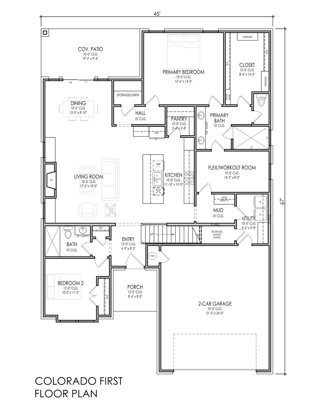 - Foundation Plan: This page shows all necessary notations and dimensions including support columns, walls, and excavated/unexcavated areas.
