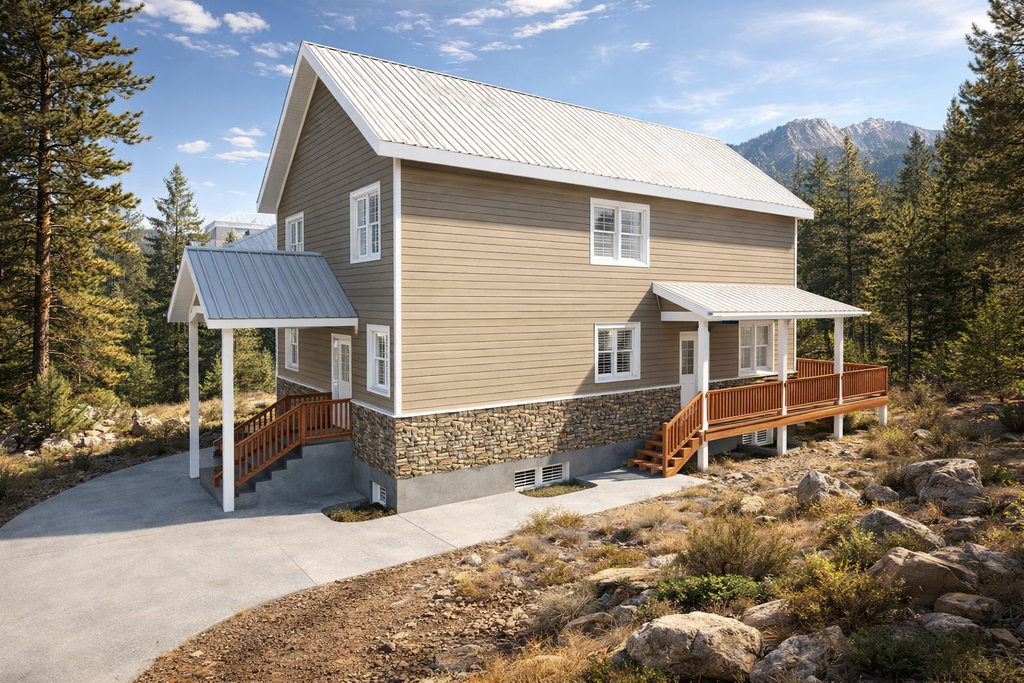 - Exterior Elevations: Views of the home from all four sides showing exterior materials and measurements.