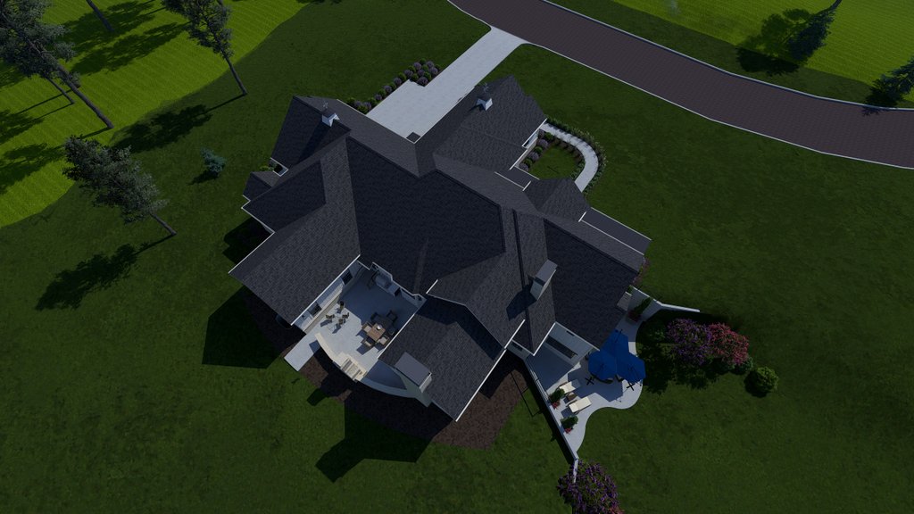 - Overhead Roof Plan(s): A view of the home from above showing roof pitch, peaks, valleys, and other details.