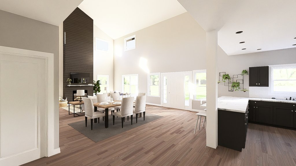 - Overhead Roof Plan(s): A view of the home from above showing roof pitch, peaks, valleys, and other details.