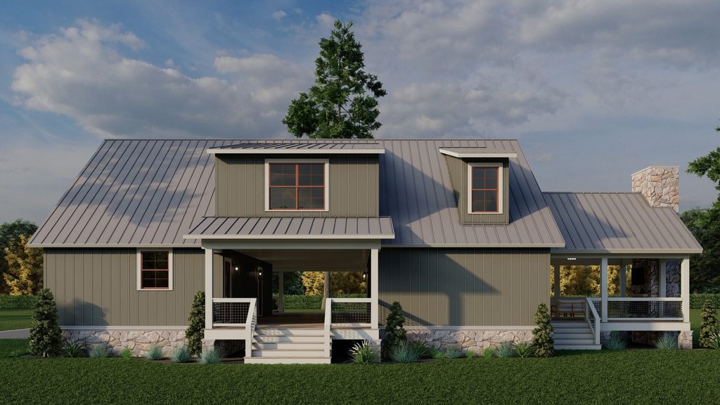 - Exterior Elevations: All plans include the exterior elevations (front, rear, right and left) that show and describe the finished materials of the house.