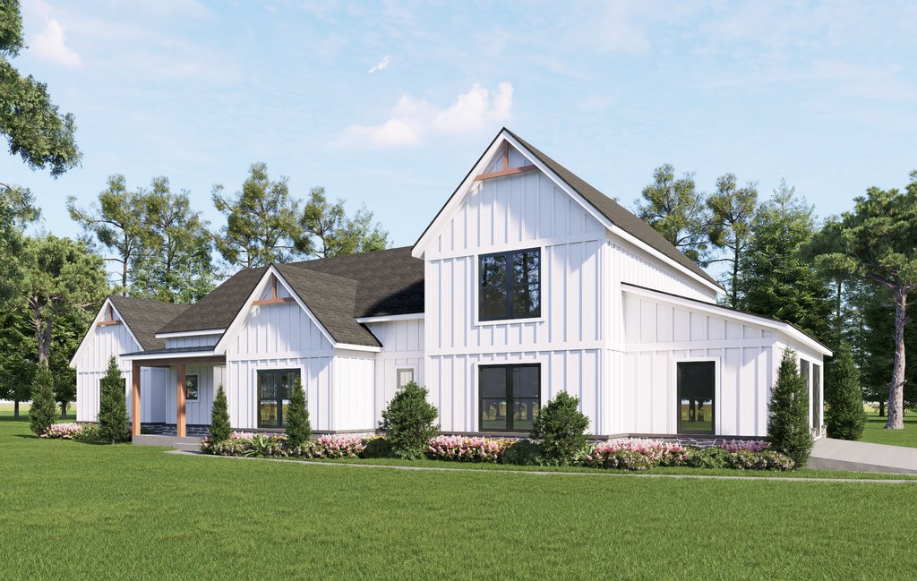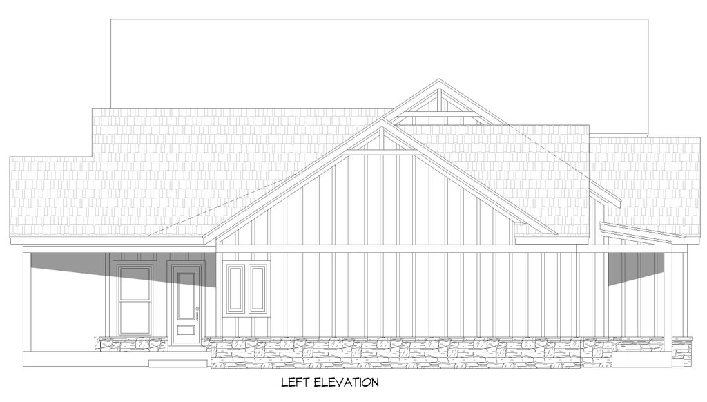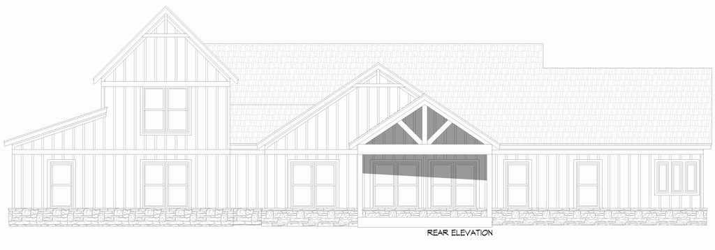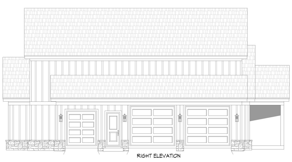 - Exterior Elevations: Views of the home from all four sides showing exterior materials, roof slope, ridge heights, siding and trim notes.