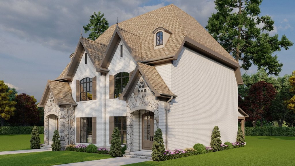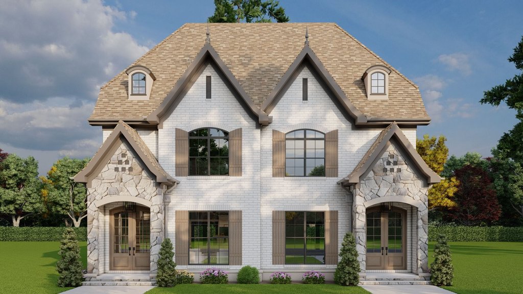 - Exterior Elevations: All plans include the exterior elevations (front, rear, right and left) that show and describe the finished materials of the house.