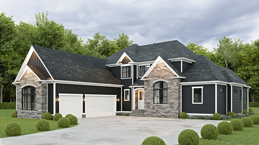 - Exterior Elevations: A blueprint picture of all four sides showing exterior materials and measurements.